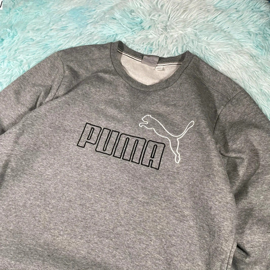 Grey Puma Sweatshirt Embroidered Spellout - Medium