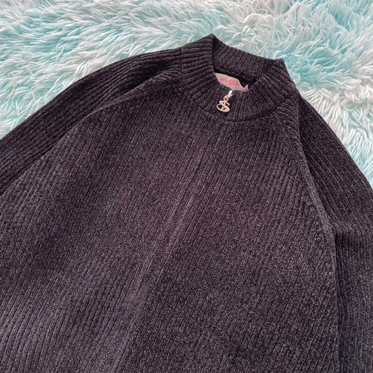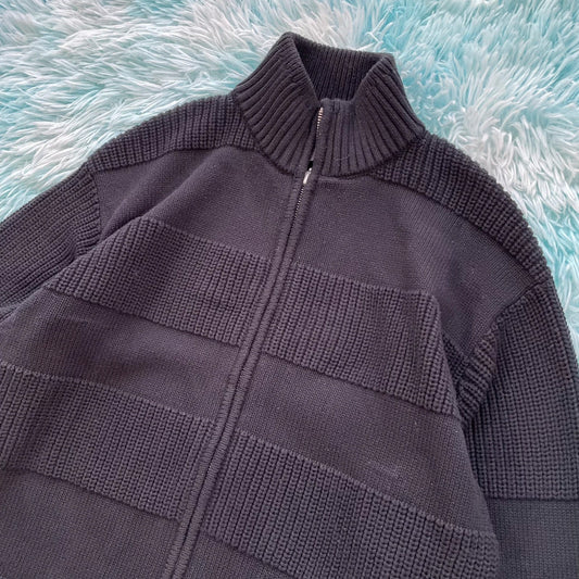 Black Yardsale Heavyweight Knitted Jumper Full Zip - Small