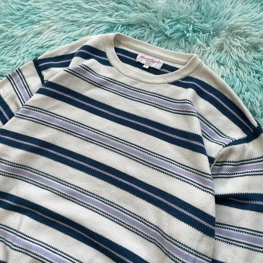 White & Navy Striped Yardsale Knitted Jumper - Large