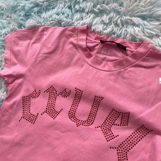 Vintage 00s Pink Guerriero T Shirt Cruel Sequinned - Small