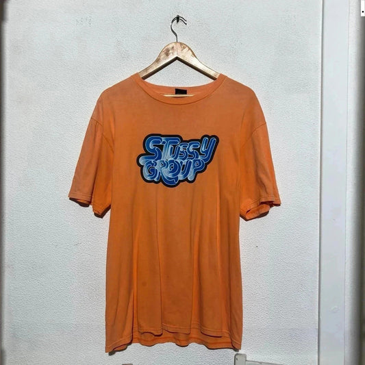 Orange Stussy T Shirt Vintage 90s made in USA - Large