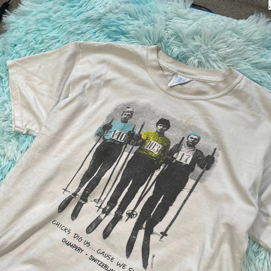 Vintage 90s White Skiing Graphic T Shirt - Large