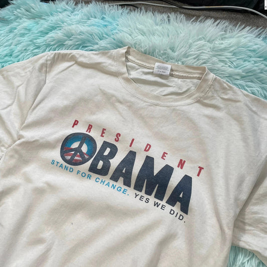 Vintage White Barack Obama Graphic T Shirt - Large