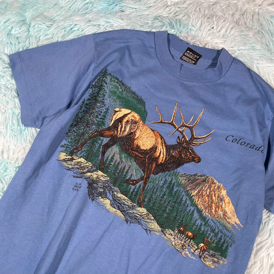 Vintage 90s Blue Nature Graphic T Shirt - Medium