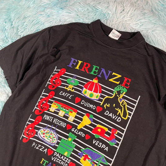 Vintage 90s Black Firenze Italy Graphic T Shirt - Large