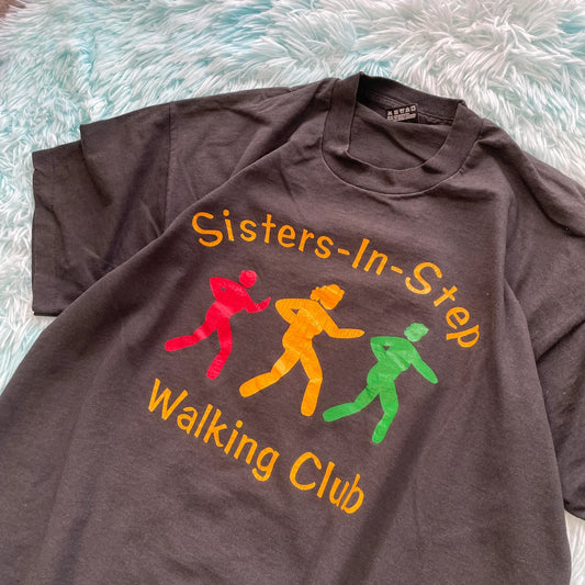 Vintage 90s Black Walking Club Graphic T Shirt - XL