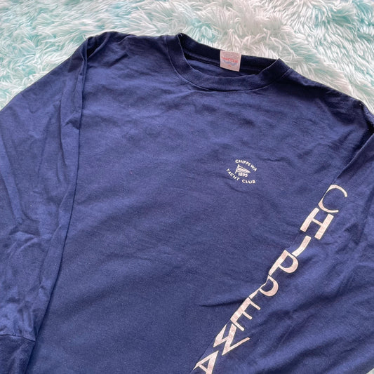 Vintage 90s Navy Chippewa Yacht Club Graphic T Shirt - XL