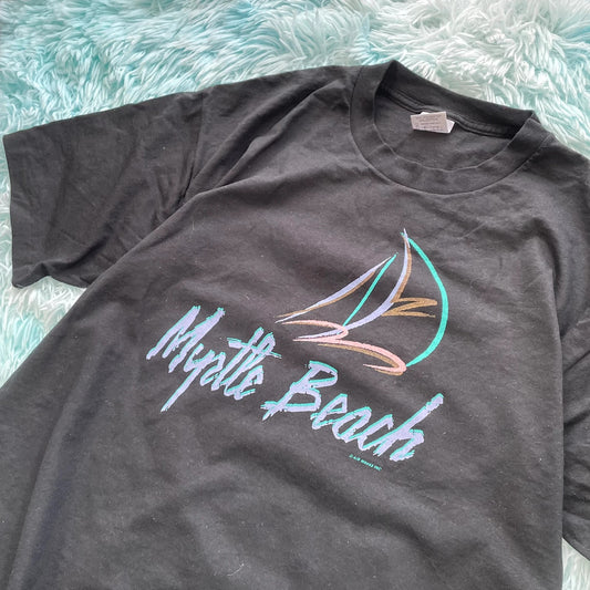 Vintage 90s Black Myrtle Beach Graphic T Shirt - XL