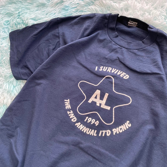 Vintage 90s Navy Graphic Print T Shirt - XL