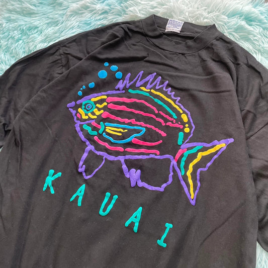 Vintage 90s Black Kauai Fish Graphic T Shirt - 3XL