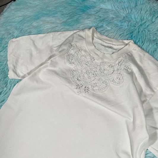 Vintage 90s White Patterned T Shirt - Medium