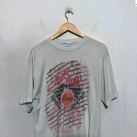 Vintage 80s White Reebok “The Pump” Trainer Graphic Print T Shirt - Large