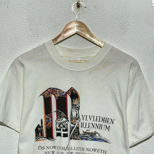 Vintage 90s White Millennium Graphic T Shirt a
