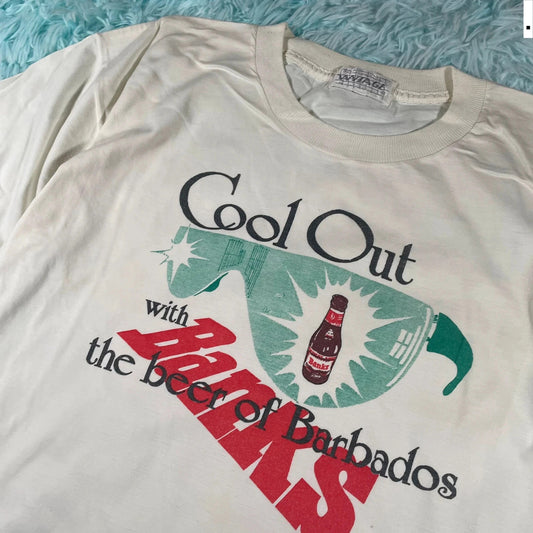 Vintage 80s White Banks Barbados Beer T Shirt - Medium