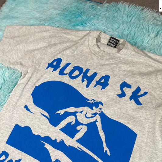 Vintage 80s Grey Aloha Surf Ski Graphic T Shirt - Medium