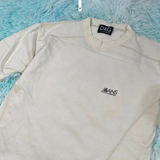 Vintage 90s Cream Dolce & Gabbana T Shirt - Large