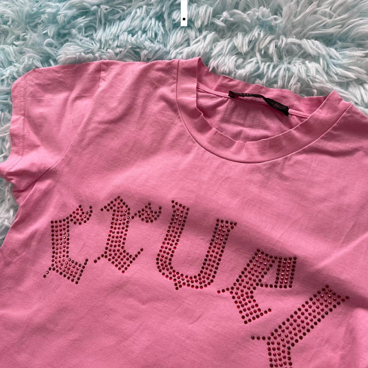 Vintage 00s Pink Guerriero T Shirt Cruel Sequinned - Small