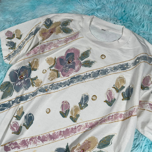 Vintage 90s White Aztec Graphic Print T Shirt - Xl