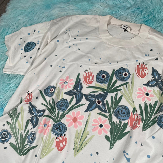 Vintage 90s White Comedy Faces Graphic T Shirt - Large
