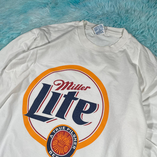 Vintage 90s White Miller Lite Beer Graphic T Shirt Long Sleeve - XL