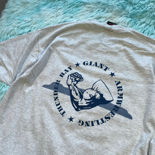 Vintage 90s Grey Arm Wrestling Graphic T Shirt - XL