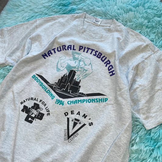 Vintage 90s Grey Bodybuilding Graphic T Shirt - XL