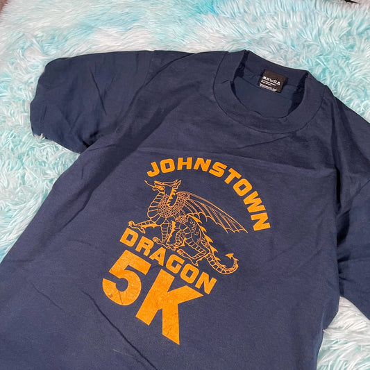 Vintage 90s Navy Johnstown Dragon 5k Race Graphic T Shirt - Medium