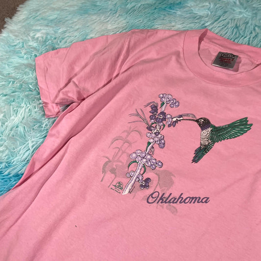 Vintage 90s Pink Oklahoma Bird Graphic T Shirt - Large