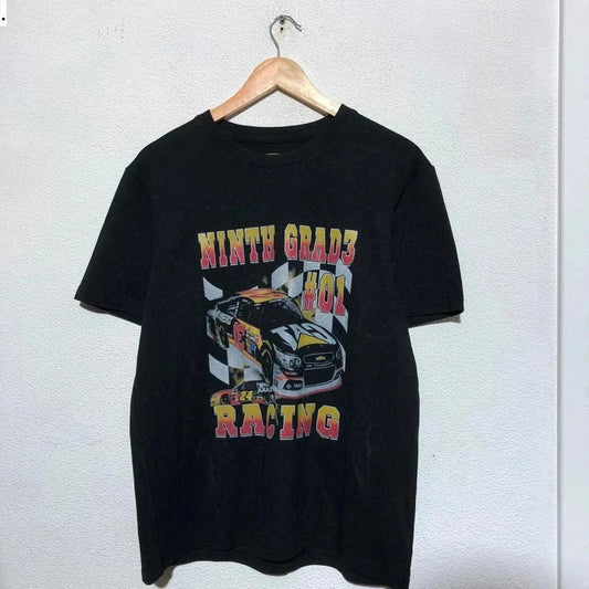 Vintage 00s Black Nascar Racing T Shirt Cat Car Graphic - Medium