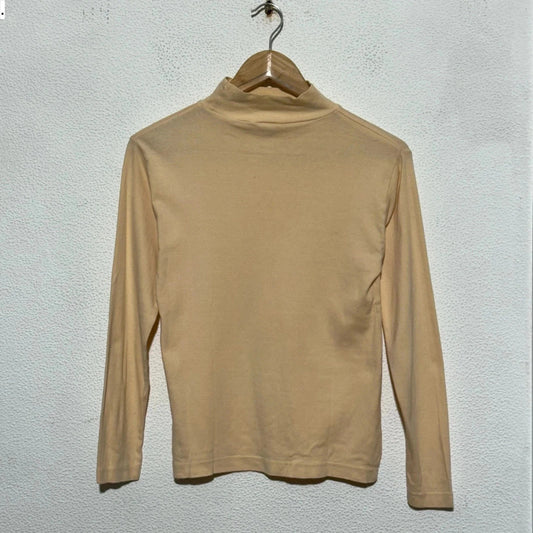Vintage Beige 90s Mock Neck T Shirt - Small