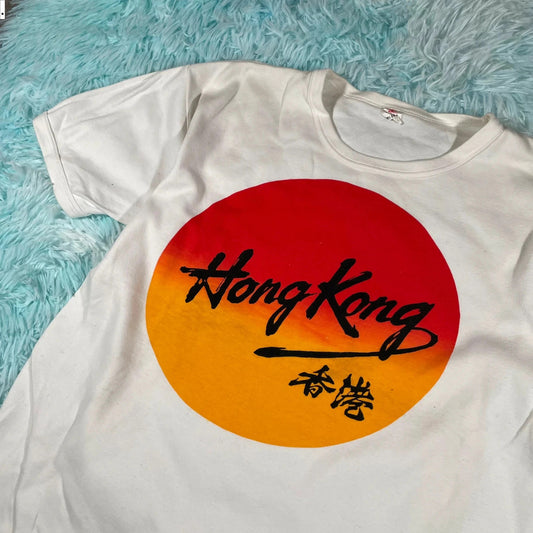 Vintage 80s White Hong Kong Graphic T Shirt - Large
