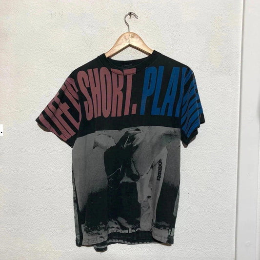 Vintage 80s Black Reebok Surfing All Over Print T Shirt - Medium