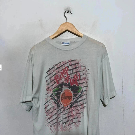 Vintage 80s White Reebok “The Pump” Trainer Graphic Print T Shirt - Large