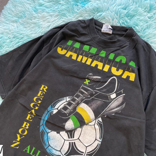 Vintage 90s Black Jamaica Football Graphic T Shirt - XL