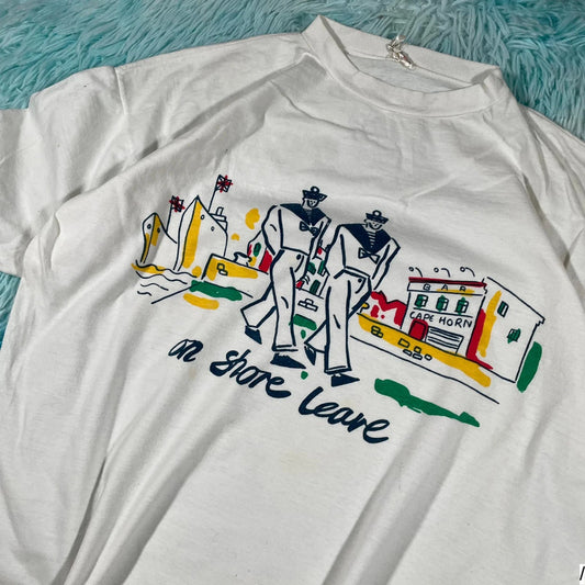 Vintage 90s White Sailor Graphic Print T Shirt - Large