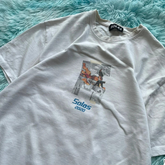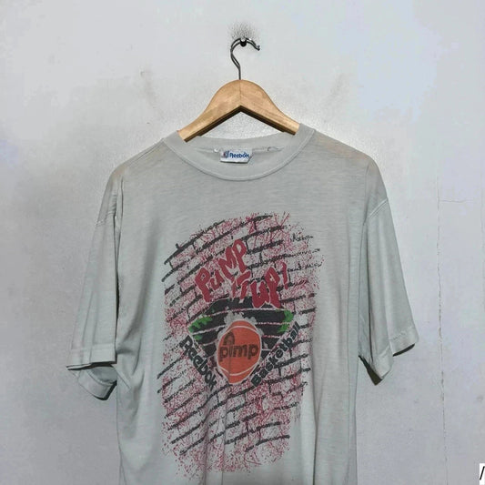 Vintage 80s White Reebok “The Pump” Trainer Graphic Print T Shirt - Large