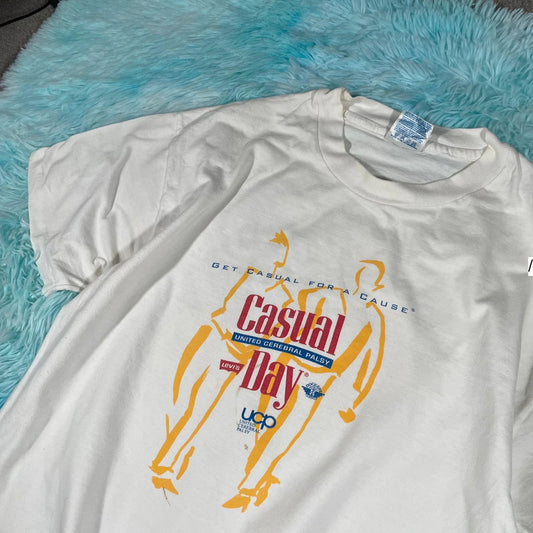 Vintage 90s White Cerebral Palsy Charity Graphic T Shirt - Large