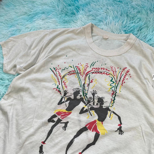 Vintage 80s White Carnival Graphic T Shirt - Medium