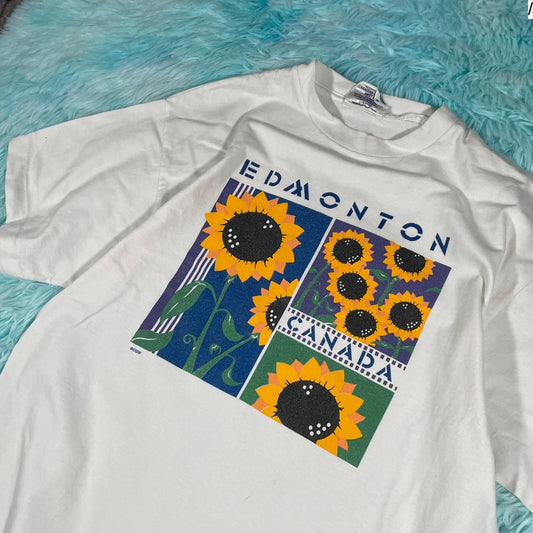 Vintage 90s White Canada Sunflower Graphic T Shirt - Medium