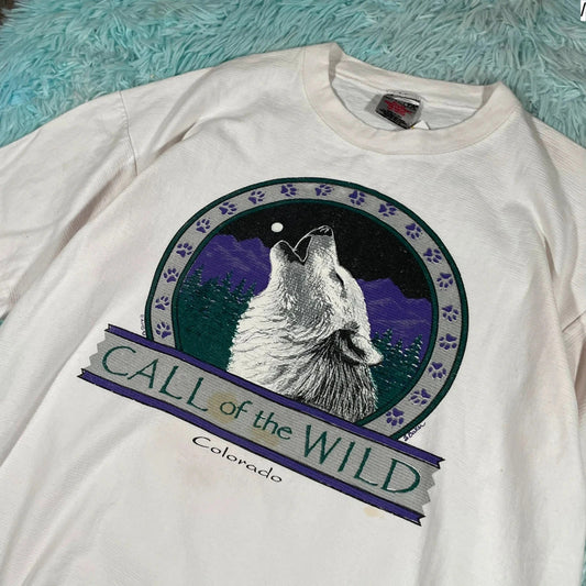 Vintage 90s Grey Wolf Graphic T Shirt - XL