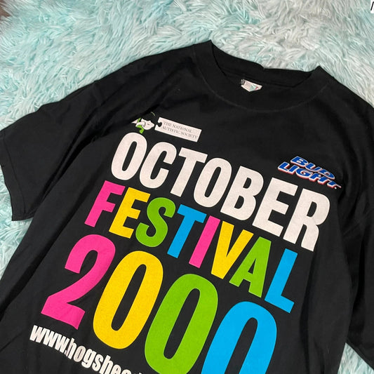 Vintage Black Hogs Head Beer Graphic T Shirt - Large