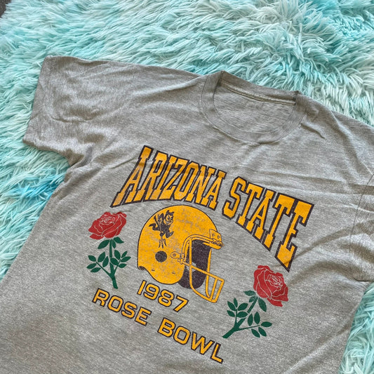 Vintage 80s Grey 1987 Rosebowl Graphic T Shirt - Small