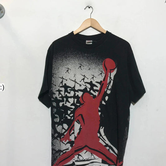 Vintage 1980s Black Nike Jordan Graphic T Shirt AOP - Medium