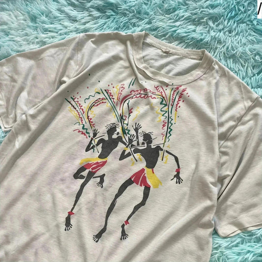 Vintage 80s White Carnival Graphic T Shirt - Medium