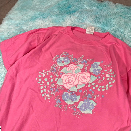 Vintage 80s Pink Floral Graphic T Shirt - Medium