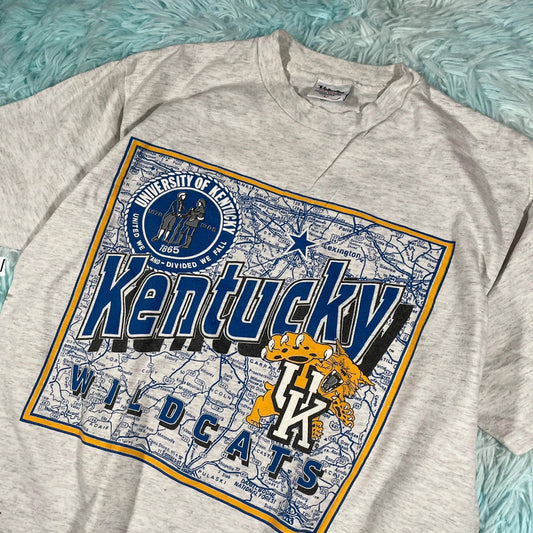 Vintage 90s Grey Kentucky Wildcats Graphic T Shirt - Large