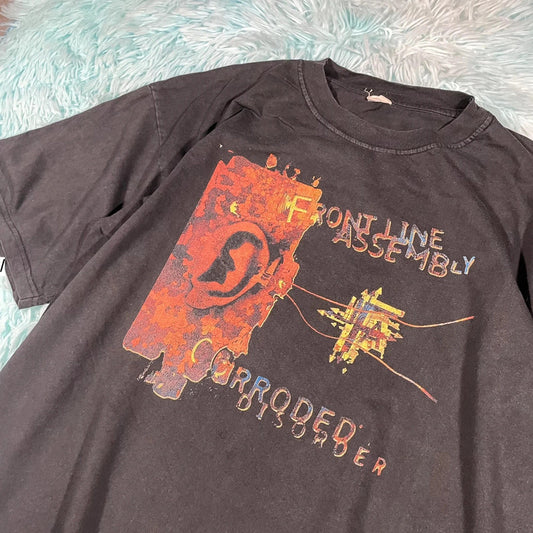 Vintage 90s Black Front Line Assembly FLA Band T Shirt - XL
