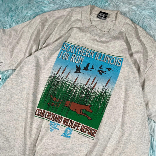 Vintage 90s Grey South Illinois Nature 10k Run Graphic T Shirt - Large