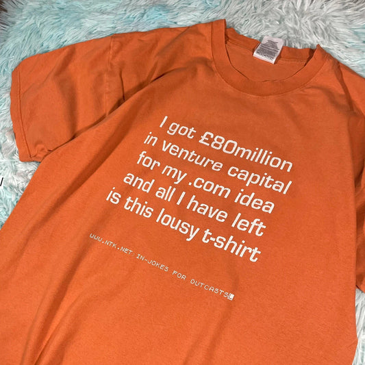 Vintage 90s Orange Comedy Slogan Print T Shirt - XL