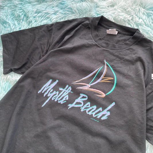 Vintage 90s Black Myrtle Beach Graphic T Shirt - XL